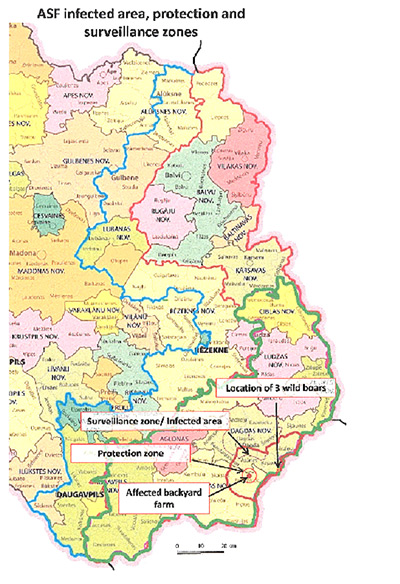 In Letland is Afrikaanse varkenspest (AVP) geconstateerd bij zowel drie gehouden varkens, op een zogenaamd ‘back yard holding’, als bij drie dood gevonden wilde zwijnen, dichtbij de grens met Wit Rusland.