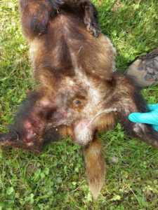 De vergrote, hard voelende balzak. Bron: Karin Derikx, Stichting Dassenwerkgroep Brabant |