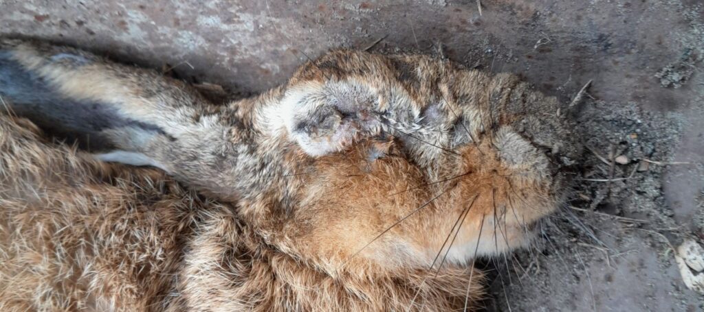 In het veld worden ook hazen gevonden die niet meer geschikt zijn voor onderzoek. In verband met de snelle verspreiding van deze nieuwe ziekte onder hazen is het belangrijk dat de dode hazen worden opgeruimd.