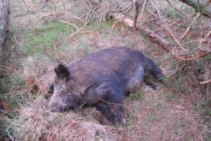 Een dood wild zwijn hoeft niet met AVP besmet te zijn: er zijn uiteraard ook andere oorzaken. Het dier op de foto was niet besmet. (Bron: Bas Worm)