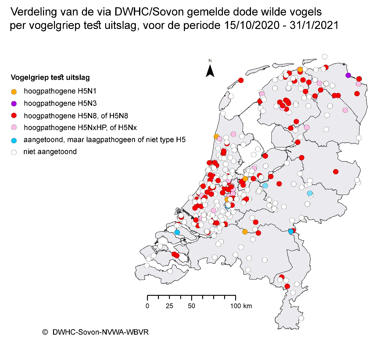 Since October 2020 The DWHC and Sovon have collected more than 400 dead wild birds to be tested for avian influenza virus at WBVR in Lelystad, The Netherlands. Most of the collected birds were individuals, because the NVWA deal with the reports of 3 or more dead waterbirds.