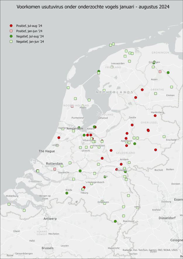 In this period birds, including blackbirds, were collected to establish cause of death and investigate the presence of usutu virus. The investigation regarding the cause of death of these birds is still ongoing, however, in multiple of these birds usutu virus could be detected via PCR.