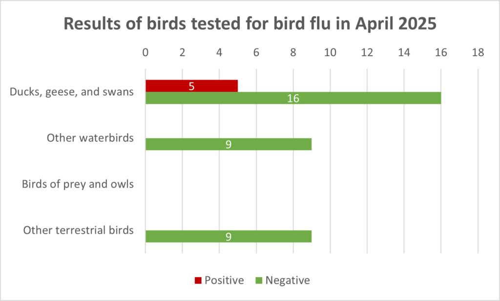 Additionally, no mammals have tested positive for bird flu in April, and no outbreaks have been reported among kept animals.
