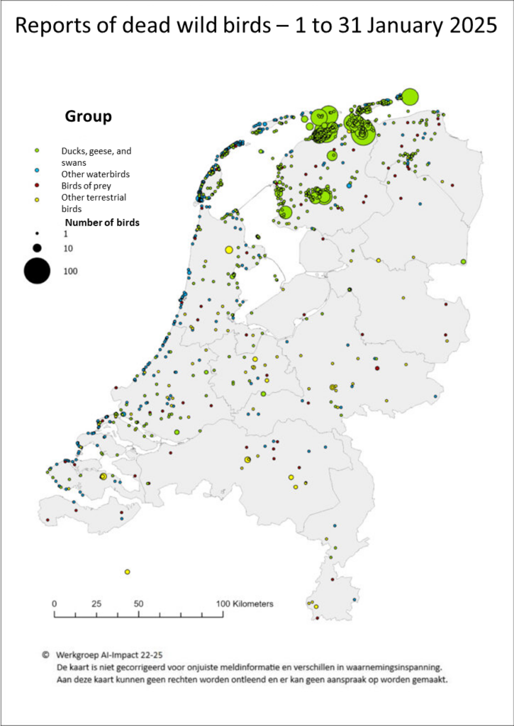 In January, avian influenza was also detected in kept animals, such as the poultry farm in the province of Friesland where about 25,000 animals had to be culled.