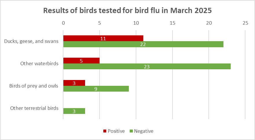 In addition, no mammals tested positive for bird flu this month, and there were no reported outbreaks of avian influenza among kept animals.