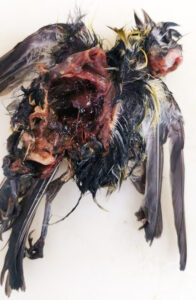 - het dode dier een “vreemde” houding heeft (het zit/ligt anders dan normaal gesproken).