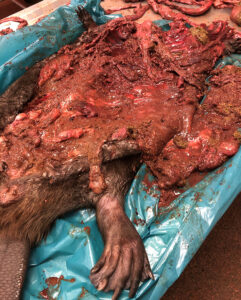 Deze bever zag er aan de buitenkant nog goed uit, maar de organen waren van binnen geheel vergaan en tot één grote brei geworden.